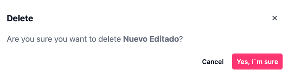Para eliminar un prompt, pulsaremos el icono de eliminación (), lo que abrirá una ventana de confirmación para evitar borrados accidentales.