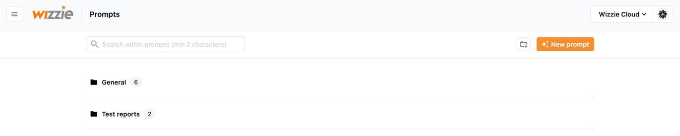 Para abrir la ventana de creación de un nuevo prompt pulsaremos cualquiera de los botones de añadir prompt, situados tanto en la barra superior ( Nuevo prompt), como en la barra de herramientas de una carpeta concreta ().