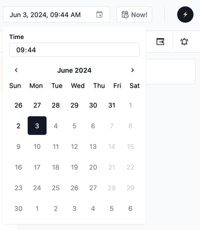 Mediante esta funcionalidad podremos crear un punto de partida para los intervalos de tiempo relativos de nuestra consulta. Mediante el selector podremos seleccionar una fecha y hora sobre la que se aplicará el tiempo relativo selecionado en el panel de consulta (Interval). También podremos seleccionar directamente la hora actual pulsando el botón "¡Ahora!".