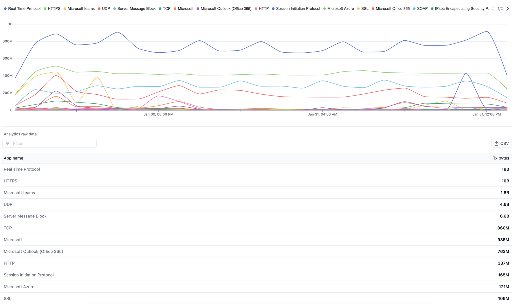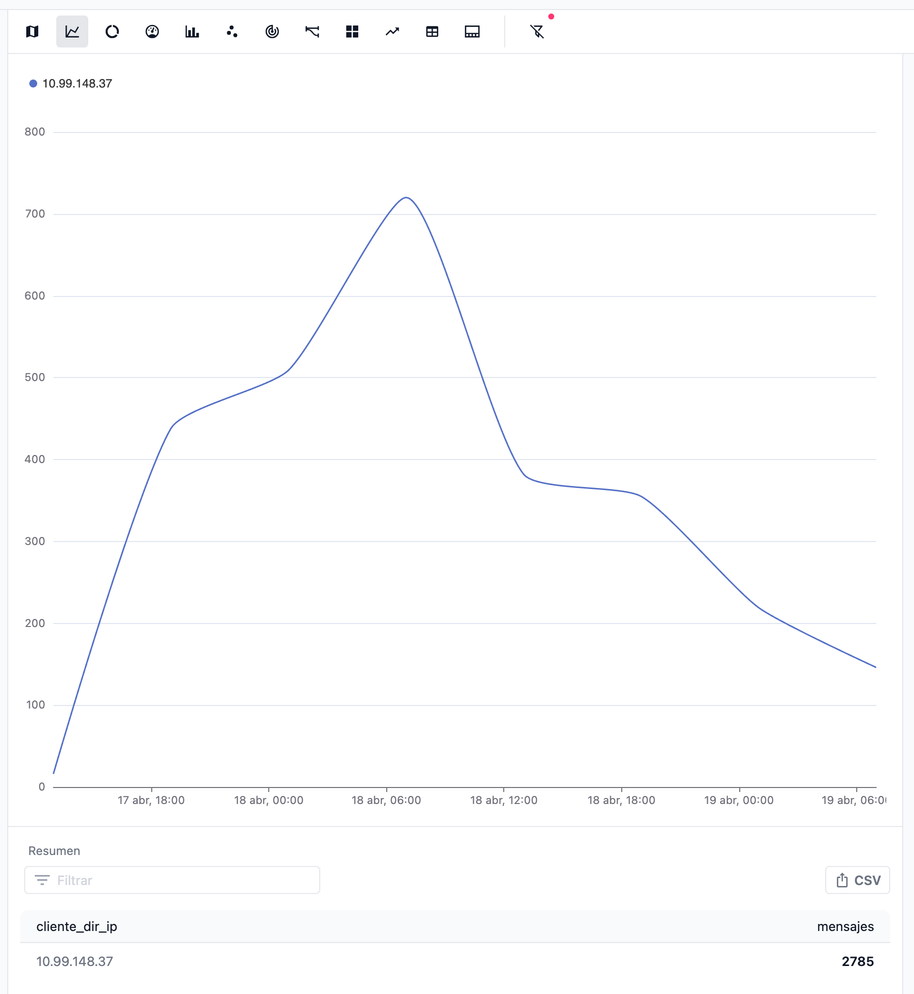 Al pulsar el botón de "Ejecutar consulta" se actualizará la visualización de los datos en la gráfica a la vez que se guarda la analítica. También es posible guardar la analítica sin ejecutar nuevamente la consultapulsando el botón de "Guardar" () o duplicar esta analítica asignandole otro nombre con el botón de "Guardar como" ().