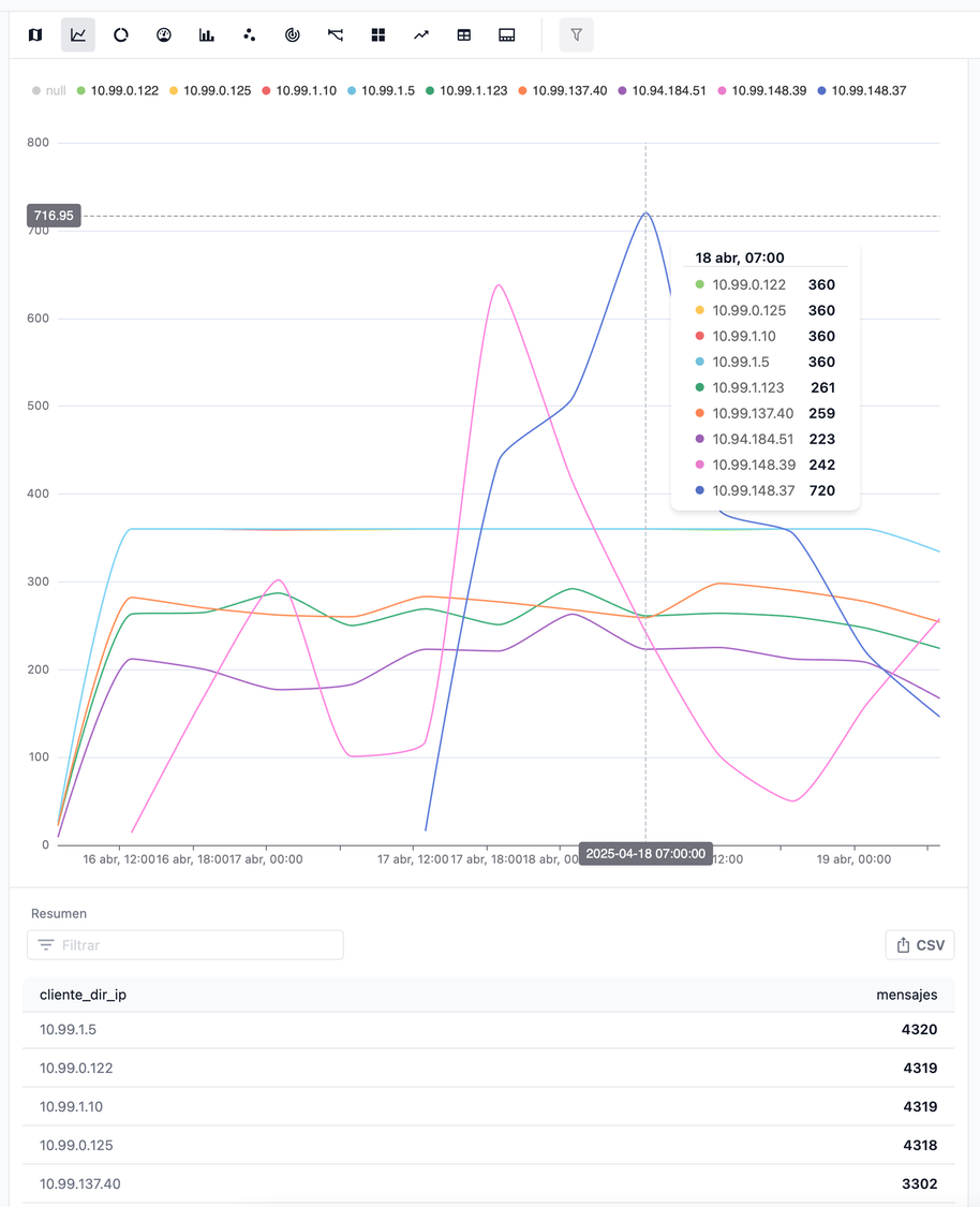 Esta capacidad está disponible en múltiples tipos de gráficos y visualizaciones dentro de la plataforma, y es especialmente útil cuando se desea realizar un análisis más específico sin perder el contexto general.