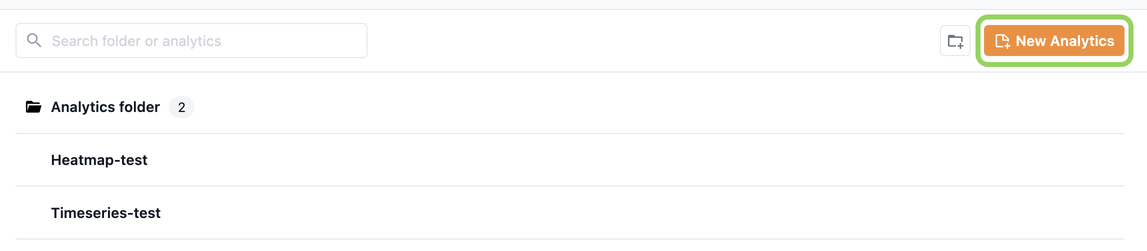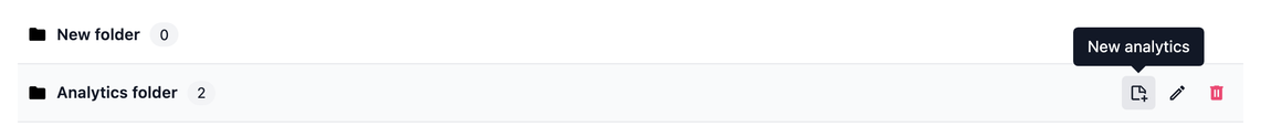 También puede crear una analítica en una carpeta pulsando el icono de nueva analítica (), que aparece en las opciones de las carpetas al situar el puntero del ratón sobre las filas de dicha carpeta.
